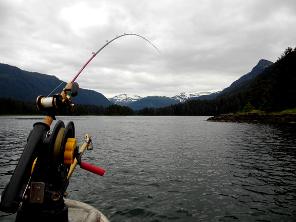 Twenty minutes later another Chinook slammed my F4 Piscatator Glow/Green Spatterback flasher and whole herring. We released that fish too, and enjoyed the scenery and uniqueness of the quiet bay. Unlike many fisheries, the Chinook here range from the surface to the bottom, a window of 60 feet.